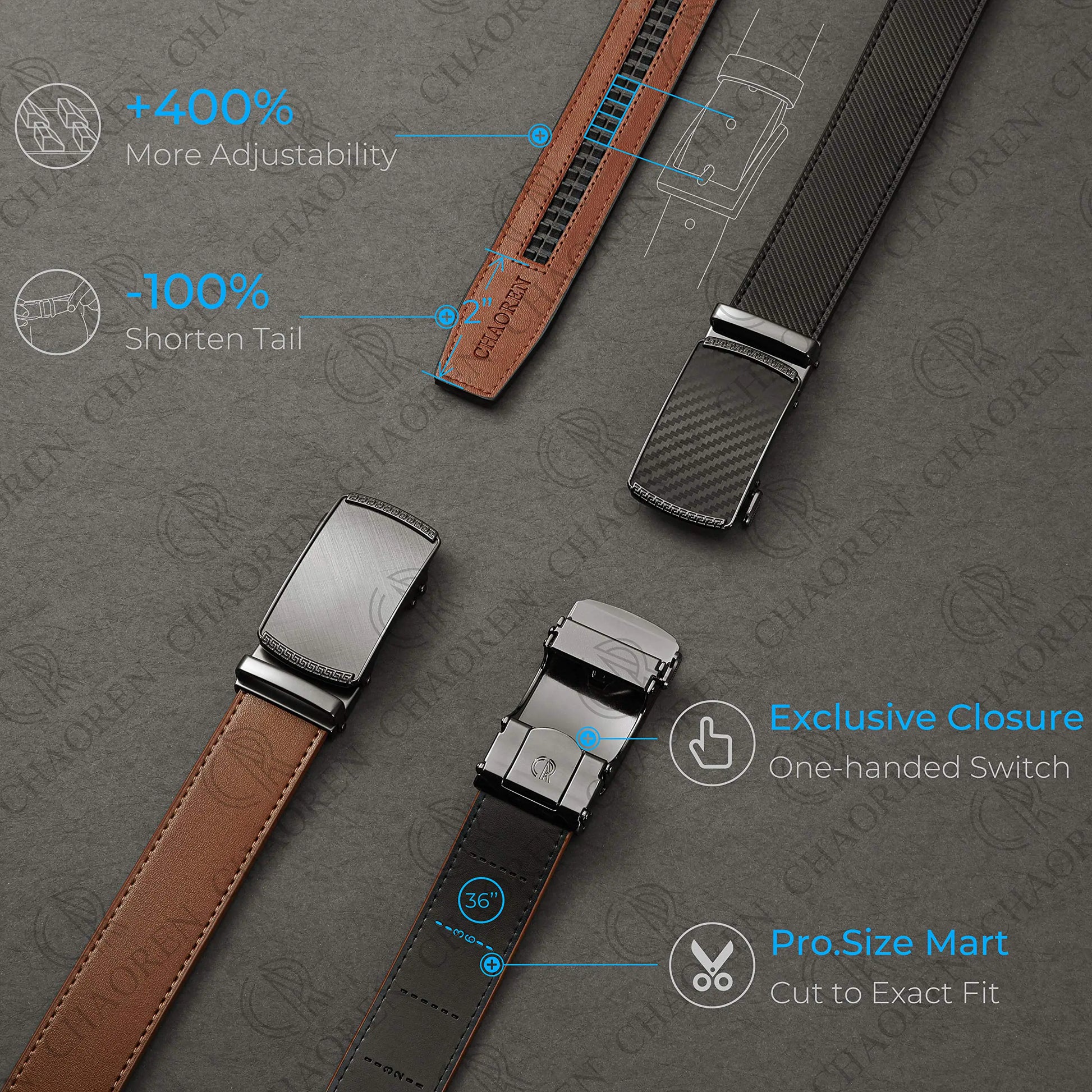 CHAOREN Mens belt - Mens Ratchet Belt Leather 1 3/8" for Dress Pant - Micro Adjustable Belt Fit Everywhere